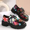 Mode Mode Floral Bedruckte Plateauschuhe Damen 2024 Herbst PU-Leder Freizeitschuhe Frau Bequeme Rutschfeste Ballerinas Zapatoas Mujer