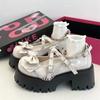 Modische Schuhe für Damen 2024 Knöchelriemen Damen High Heels Plateaupumps Schleife Nieten Kette Quadratischer Absatz Schnallenriemen Damenschuhe