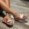 Mode 2024 Neu Einzeilige Seide Dicke Sohle Hausschuhe für Damen Übergröße Berühmter ethnischer Stil Einfache Strandschuhe
