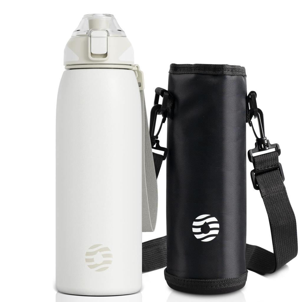 FJbottle 1 Liter Vacuum Insulated Sports Keeps Hot or Cold Drinks Hot or Wide Easy to Stainless Includes Water Bottle Cover and Cleaning Stylish for