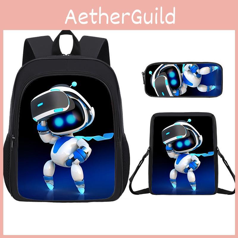 Astro Bot Trendy Schülerrucksack Dreiteiliges Set aus strapazierfähigem Material für den Schulgebrauch