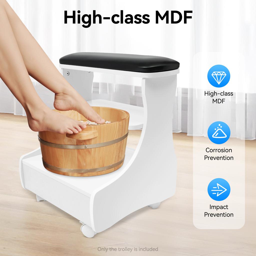 Multi-Functional Foot Bath Stool with Wheels & Drawer, for Home Pedicure Spa and Massage, Removable Shelf, 44lbs Capacity
