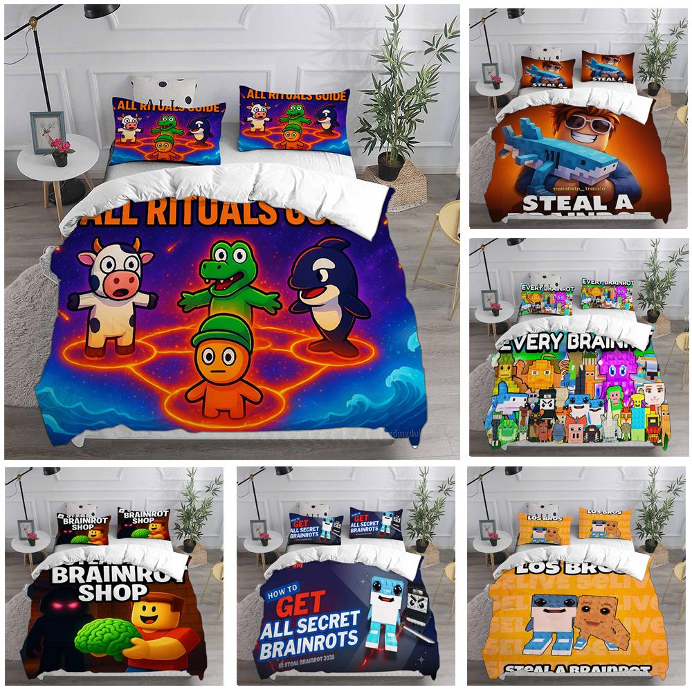 Steal A Brainrot Rob Loxs Bettwäsche-Sets, Bettdecke, Steppdecke, Bettbezug, Kissenbezug, 2-3-teilige Sets, Kinder- und Erwachsenengrößen