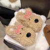 Weiche, niedliche Hausschuhe mit Schleife und Welpenmotiv, warm, rutschfest und flauschig, Damenmodell für Herbst und Winter, flacher Baumwollmopp