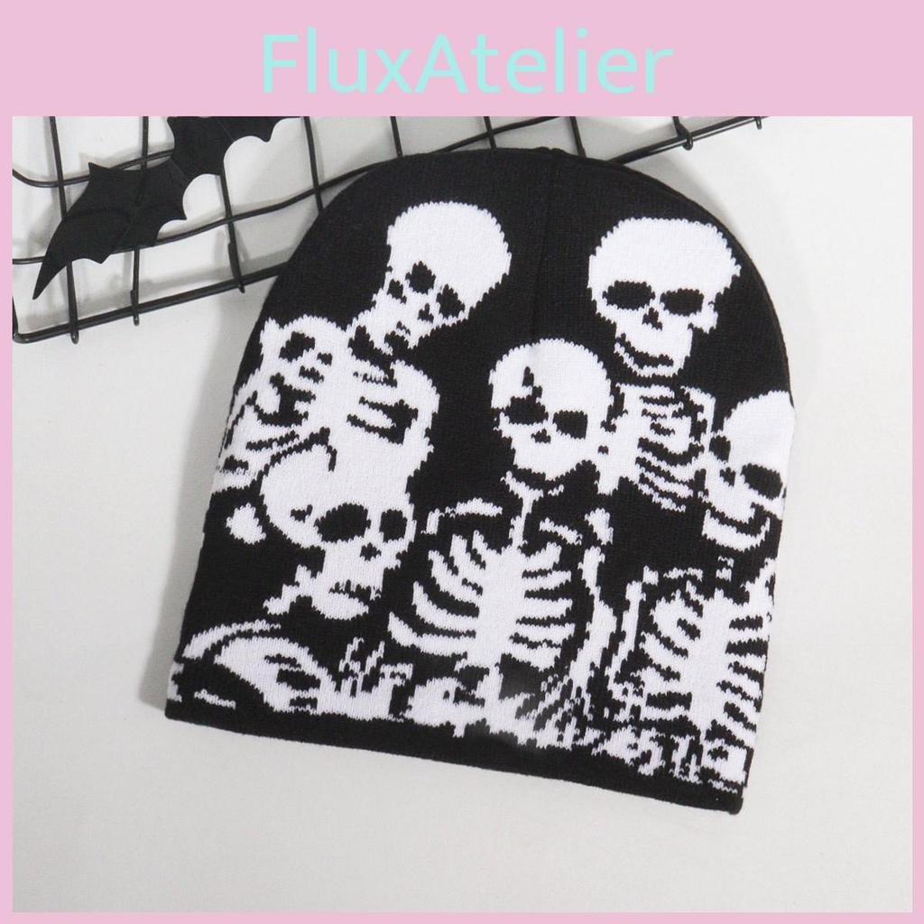 Strickmütze mit Totenkopfmuster und Wärmefunktion für Streetwear, Jugendmode und Herbstsaisonen