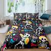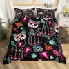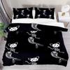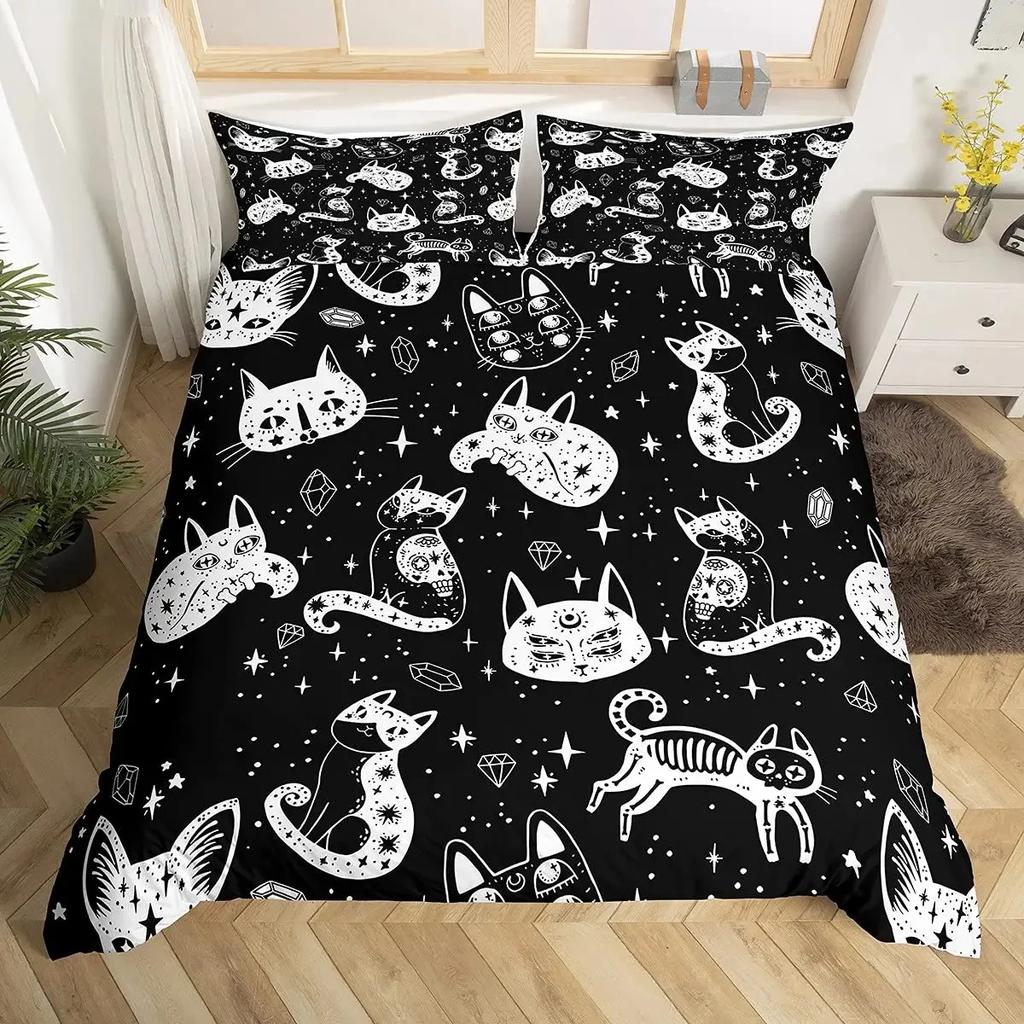 Katzenknochen-Bettwäscheset Full QueenHalloween Gothic Totenkopf Bettwäscheset SchwarzWeiß Galaxie Bettdeckenbezug Steppdeckenbezug