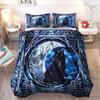 Wiccan Occult Black Cat Duvet Cover Set,Gothic Black Cat Bedding Sets Mysterious Sun And Moon Comforter Cover Queen Size
