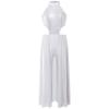 Mädchen Glänzende Pailletten Neckholder Ärmellos Rückenfrei Jumpsuit mit Rock Latein Tanz Performance Kostüm