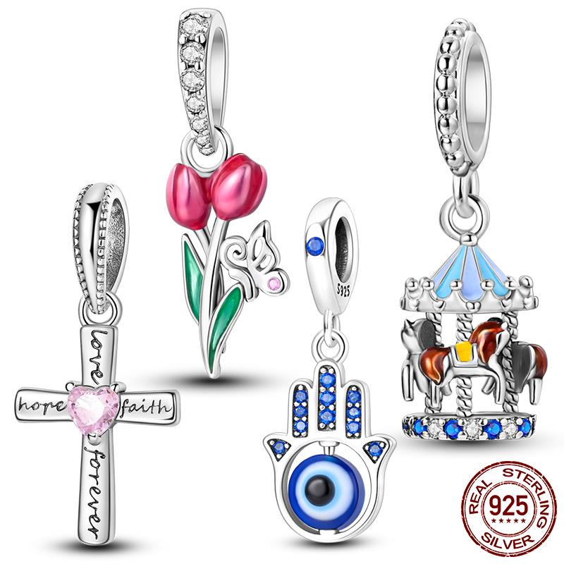 Kupfer Dangle Charm Rosa Kreuz Tulpe Anhänger Passend für Original Armband DIY Frau Schmuck Geschenk