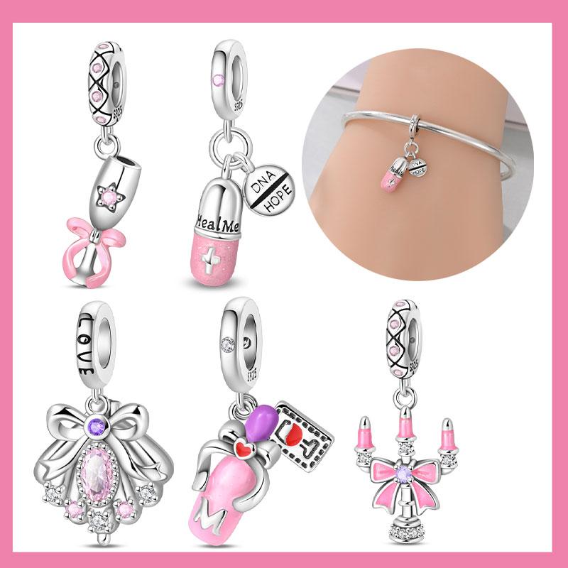 Copper Pink Series Candlelight Slightly Goblet Bowcup Charms Beads Pendant For Original Bracelet Woman Girl Jewelry