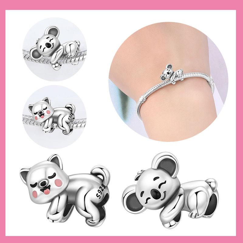 Copper Koala Puppy Sleeping On Her Tummy Chain Charms Beads Pendant For Original Bracelet Woman Girl Jewelry