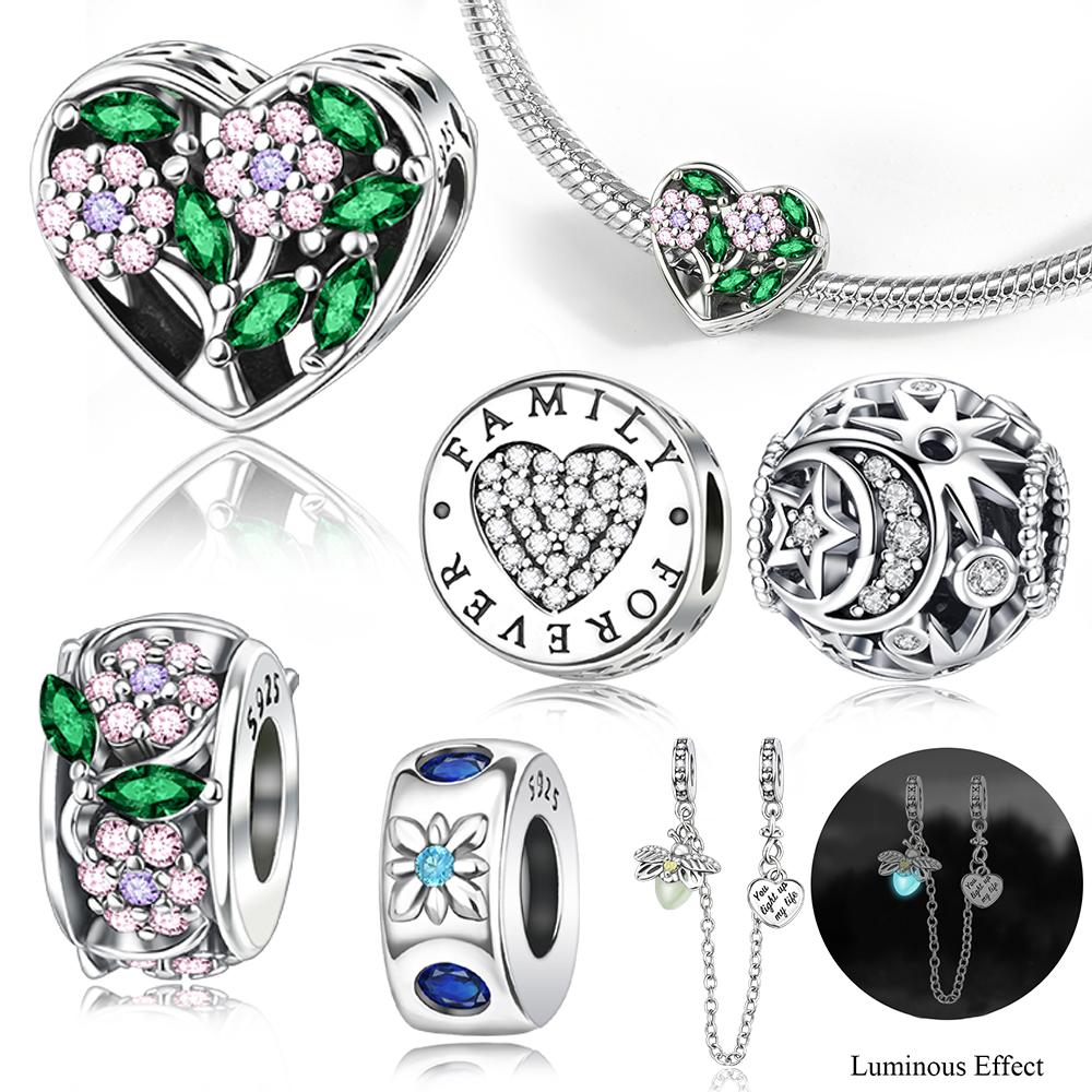 Fashionable Copper Colorful Zirconium Heart&Hollow Ball&Luminous Firefly Charm Fit Brand Bracelet Jewelry