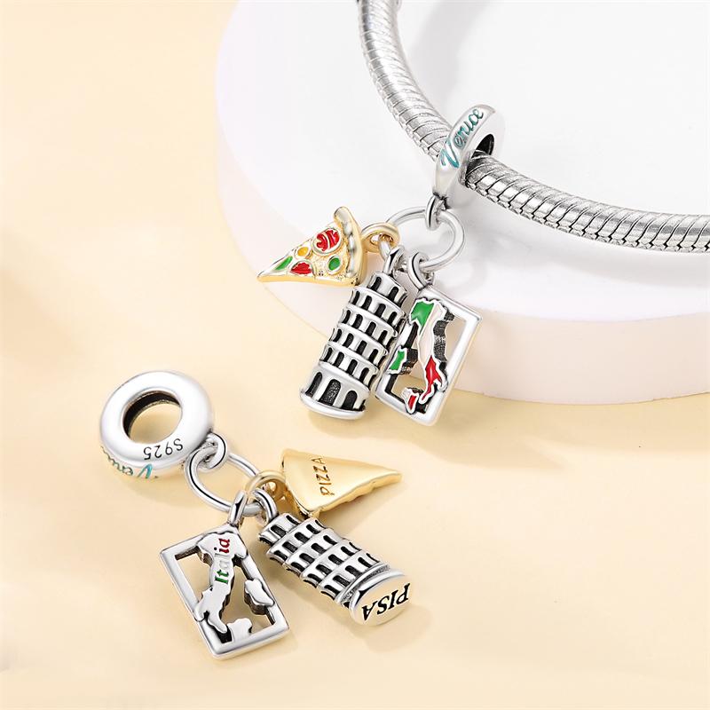 Klassischer Kupfer Eiffelturm Koffer Berühmte Sehenswürdigkeiten Charms Perlen Passend für 3mm Original Armbänder DIY Schmuck Geschenk