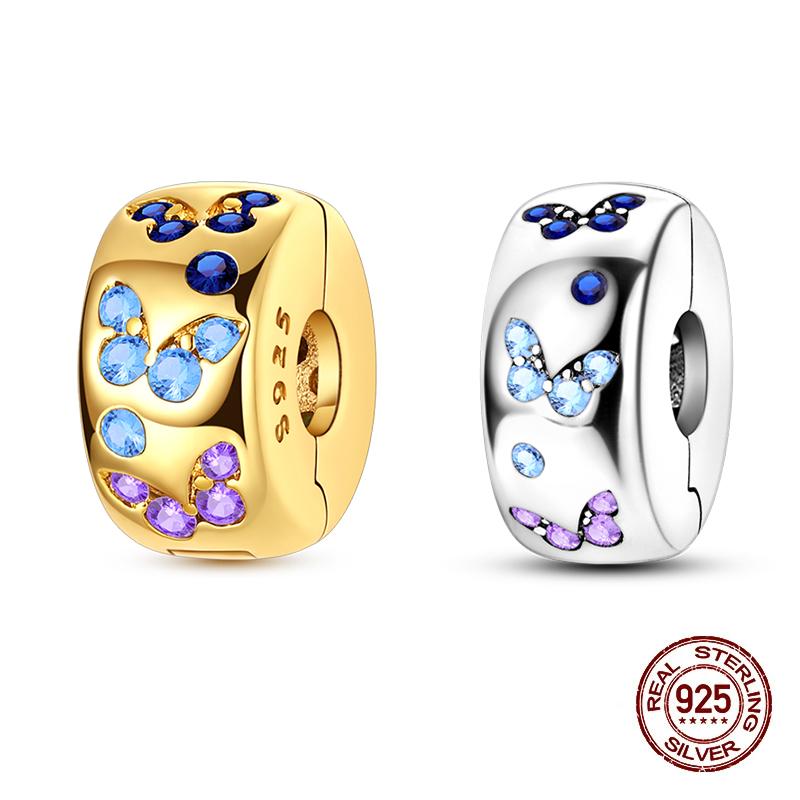 Kupferverschluss Kupfer Zirkonia Pavé Clip Charms Schmetterlingsperlen Stopper Sicherheitskette Passend für Original Armreif Schmuck C