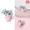 Copper Charms Animal Color Pink Rabbit Sheep Cat Dog Beads Fit 3Mm Original Bracelets Fine Diy Birthday Jewelry Make