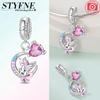 Exquisite Pink Color Charms Beads Copper Cute Girl Wonderland Unicorn Colour Heart Shape Pendant Fit Bangle Bracelet Jewelry