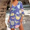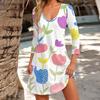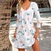 Damenmode Lässig V-Ausschnitt Blumendruck Tasche Dreiviertelarm Kleid