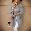 Lange Strickjacke Damen Herbst und Winter Strick Lose Spleißtaschen V-Ausschnitt Pullover Pullover Mantel Bequem Vielseitig und Modisch