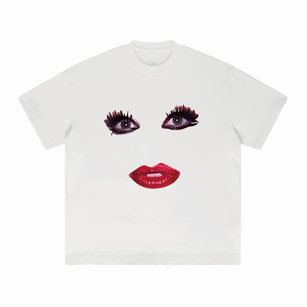 Augen- und Mundausdruck Bedrucktes Baumwoll-Kurzarm-T-Shirt im europäischen und amerikanischen Stil Singen Kreative Jacke Lustiges Meme