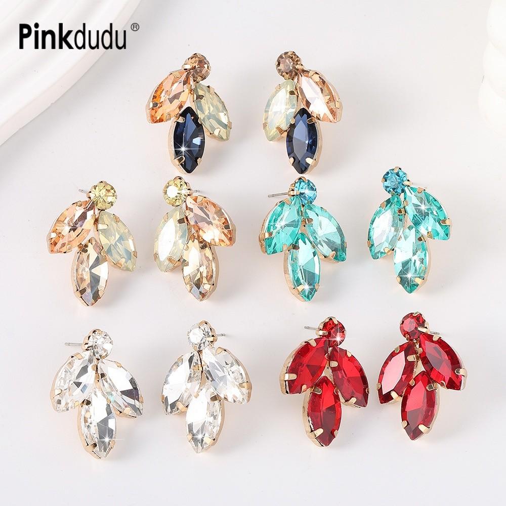 Pinkdudu Crystal Stud Earrings Multi-Layer Alloy Rhinestone Earrings Versatile Sparkling Jewelry PD2406