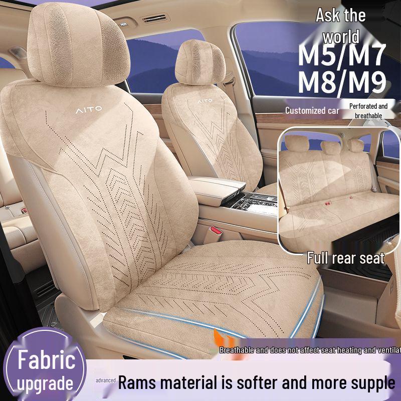 AITO M5/M7/M8/M9 Car Seat Covers with Suede, Ventilated, Breathable Saddle Pad, Half-Wrap Cushion