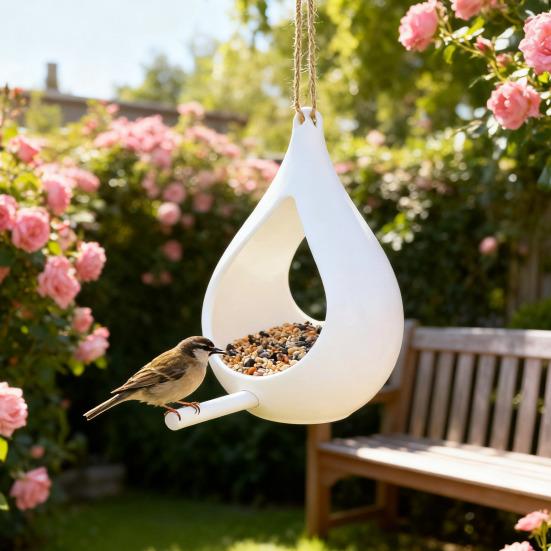 Die leichte Konstruktion macht es einfach, sie an Bäumen, Balkonen oder Gärten aufzuhängen und bei Bedarf leicht umzupositionieren.. Das Weithalsdesign ermöglicht eine einfache Überwachung der Futterstände und fügt sich nahtlos in die natürliche Umgebung ein, wodurch Schönheit und Praktikabilität für ein angenehmes Vogelfütterungserlebnis kombiniert werden.