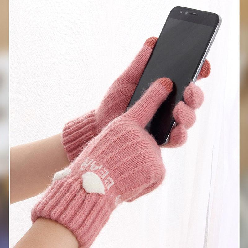 Korean Cat's Ears Cute Knitted Gloves Women Thickened Warm Touch Screen All Finger Gloves Soft Skin Friendly Splice Color Gloves