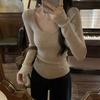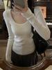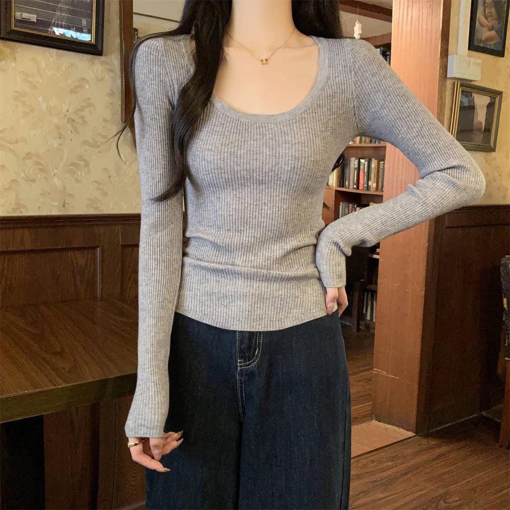 Skinny Spice Girl U-Neck Front Shoulder Knitted Bottom Shirt Women's Spring Slim Skinny Inner Top Soft Waxy Long Sleeve Sweater