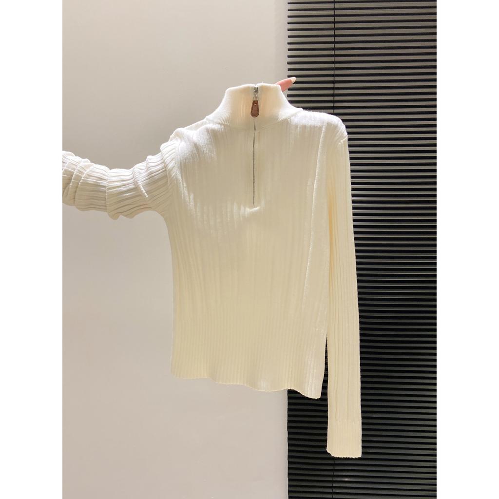 Waist high-end small stand-up neck knitted sweater women's autumn and winter slim-fit soft waxy zipper inner top bottoming shirt