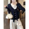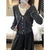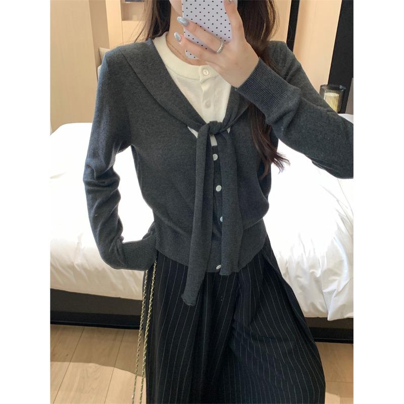 Contrasting color shawl knitted sweater jacket women's spring and autumn niche fake two tops button sweater cardigan