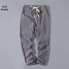 Men's Casual Linen-Cotton Nine-Point Trousers - Lightweight Straight-Fit Summer Pants