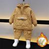 Steppanzug für Jungen, Winteranzug für Kinder, einfarbig, dick, mit Baumwolle gefüttert, zweiteilig, Baby-Winteranzug mit Baumwolle gefüttert