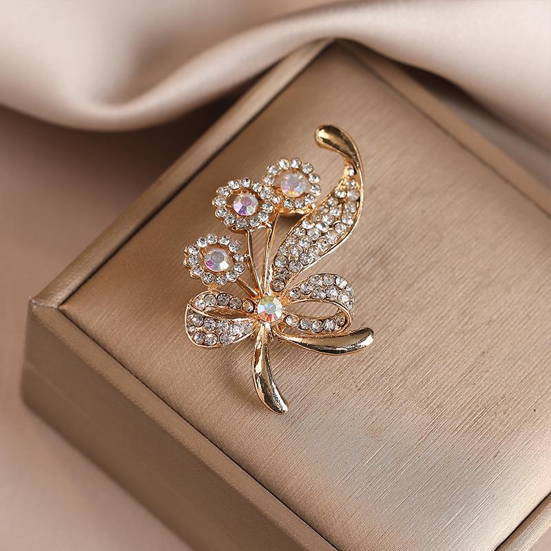A Light Luxury and High-end Floral Brooch with Diamonds, A Niche Brooch, A Coat Accessory, and A Leak-proof Brooch