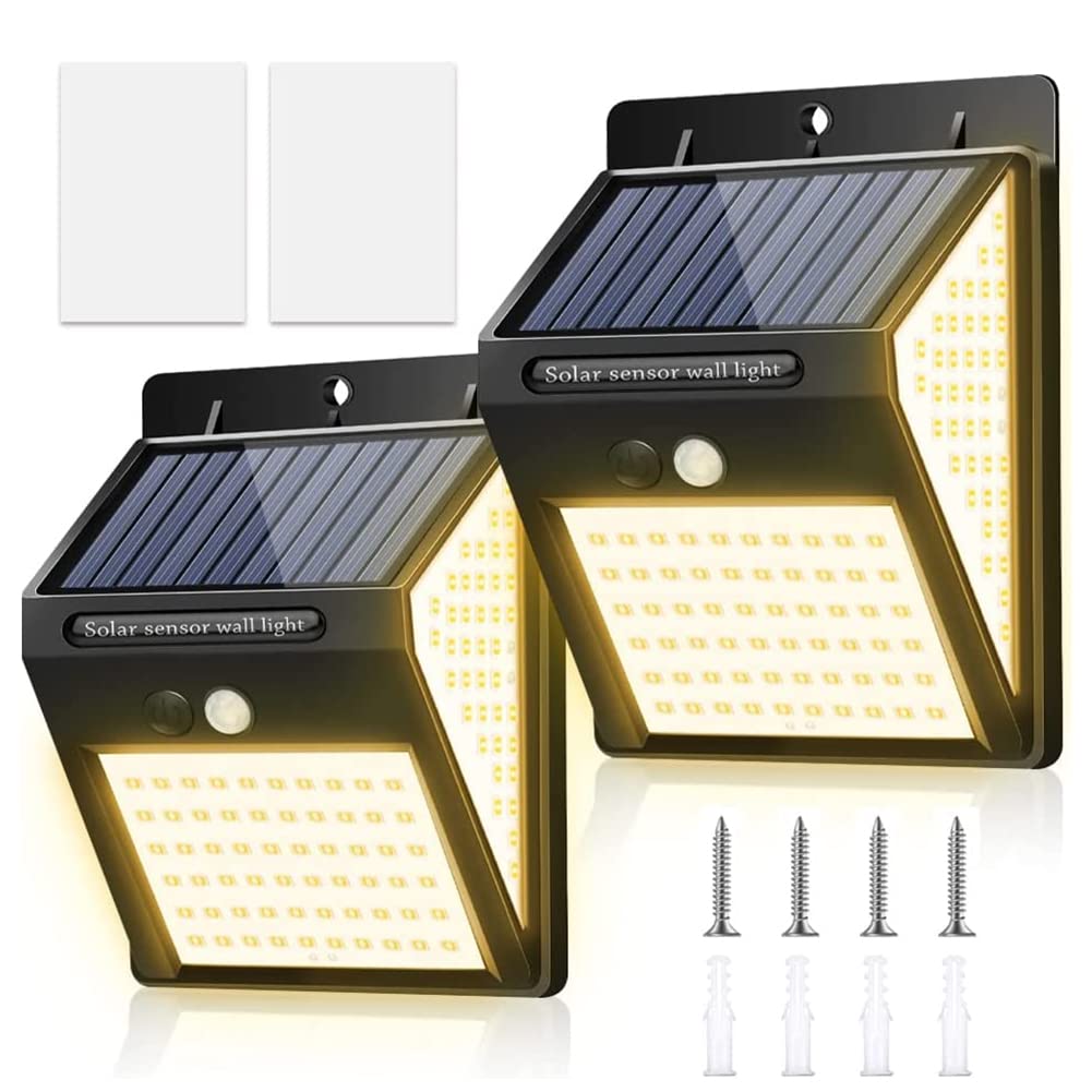 Introducing the BINGONE improved warm-color 220 LED solar light! This improved solar light features 220 LEDs and emits light from three sides simultaneously, achieving a 300° illumination range. It features a warm-colored and soft warm-colored light, providing a beautiful nighttime illumination effect and creating a warm atmosphere. It's ideal for security and lighting in entryways, yards, hallways, shops, garages, gardens, verandas, parking lots, and more.