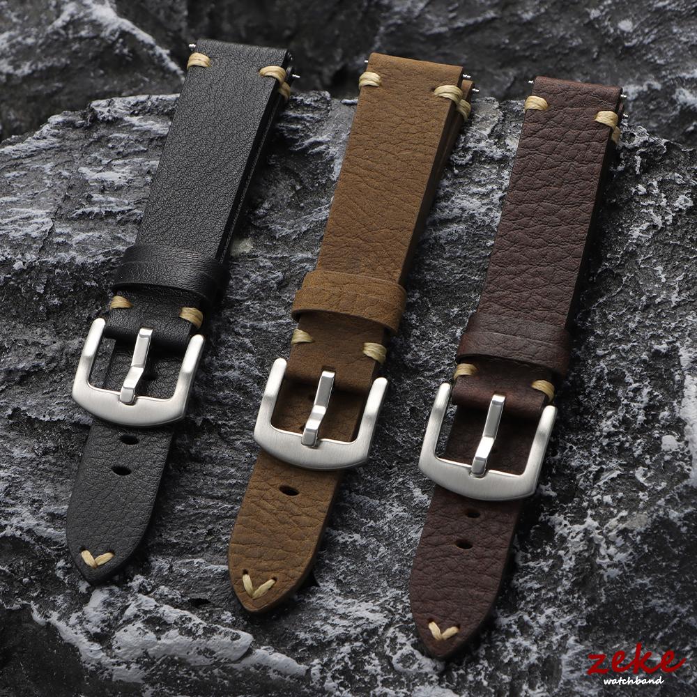 20MM 22MM Echtes Rindsleder Uhrenarmband Vintage Weich Erste Schicht Kalbsleder Uhrenarmband Herren Braun Schwarz Handgefertigte Naht Armbänder