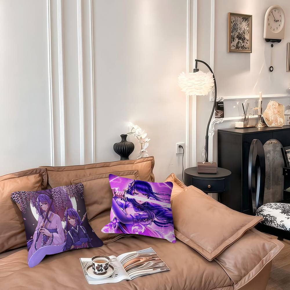 G-Genshin Impact Raiden Shogun Dekorative Raumästhetik Kissenbezug Heimdekor Schlafzimmer Sofa Bett Couch Kissenbezug 45x45