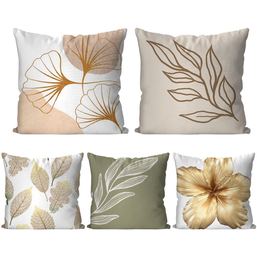 1 Stück Goldblatt Ginkgoblätter Kissenbezug Quadratisches Kissen Schlafzimmer Sofa Freizeit Komfortkissen Auto Wohnzimmer Heimdekoration 40X40
