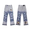 Handbemalte Kleckstinte Patchwork Kordelzug Lässige Jogginghose, Micro-Flare Denim, Unisex Lange Hose