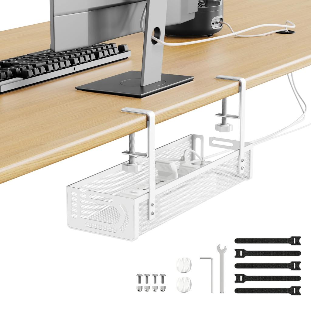 Oterri Kabelwanne, Untertischaufbewahrung, Kabel verstecken, 40 cm breit, Passend für Schreibtische 1-5 cm breit, Kein Bohren oder Kleben erforderlich, Einfache Installation,