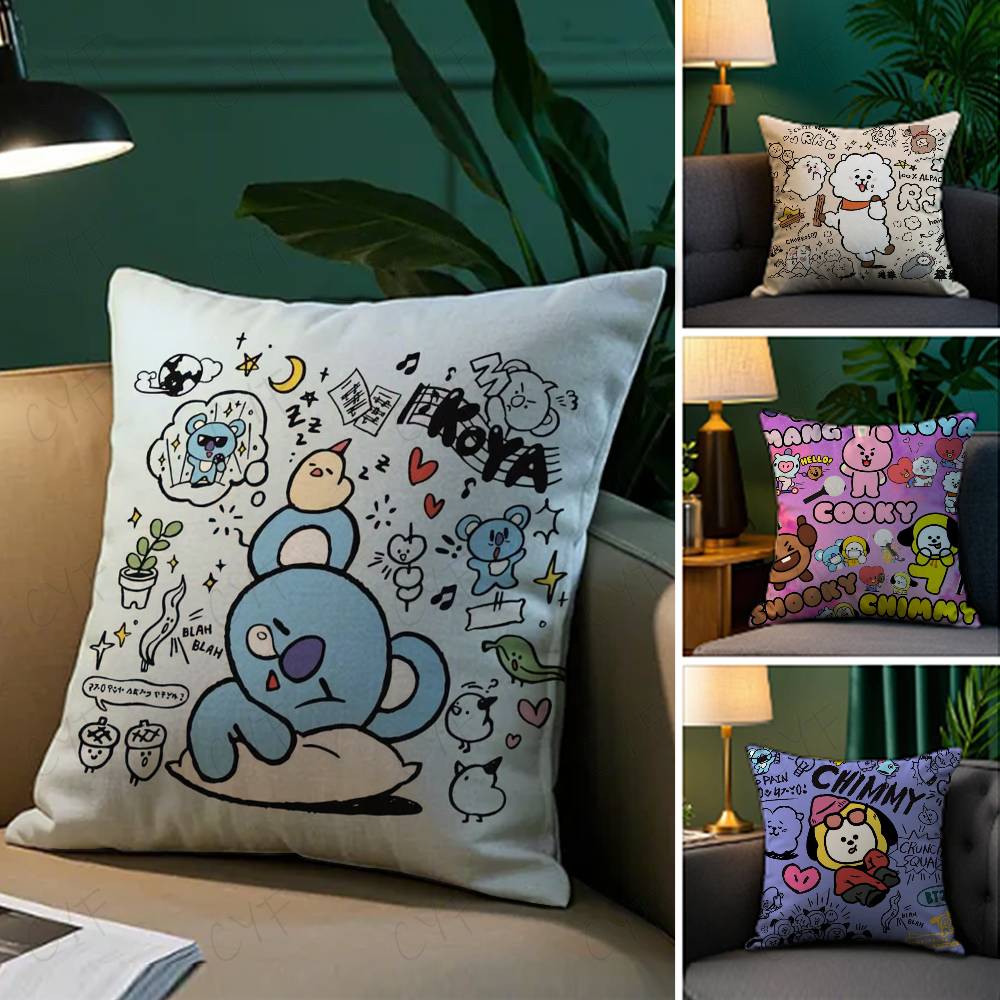 Niedlicher B-bt21s Anime Kissenbezug Sicheres Benutzerdefiniertes Foto Kissen, Farbechter Kissenbezug aus gebürstetem Fleece, Sicher für Mütter und Säuglinge.