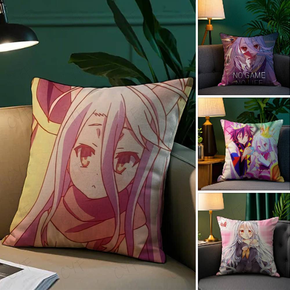 No Game No Life Anime Pillow Case Anti-dustmite Pillowcase Invisible zipper silky short plush Sofa cushion cover