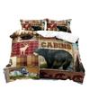 Bauernhaus Bettbezug-Set, Schwarzbär Hirsch Elch Elch Waldtier Wildtier Lodge Rustikales Bettwäsche-Set King, Salbeigrün Braun Kariert