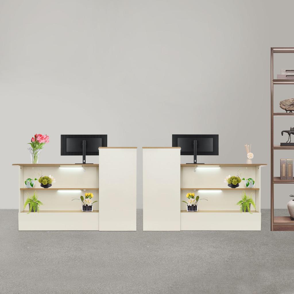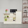 150*50*100cm Rectangle Solid Wood Reception Desk,Warm White+Log Color Reception Desk with a Lockable Drawer for Offices,Shops