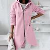 Winter Damen Lässig Reißverschluss Kapuzenjacke Langarm Asymmetrischer Saum Einfarbig Strickjacke Mantel Herbstmode Oberbekleidung