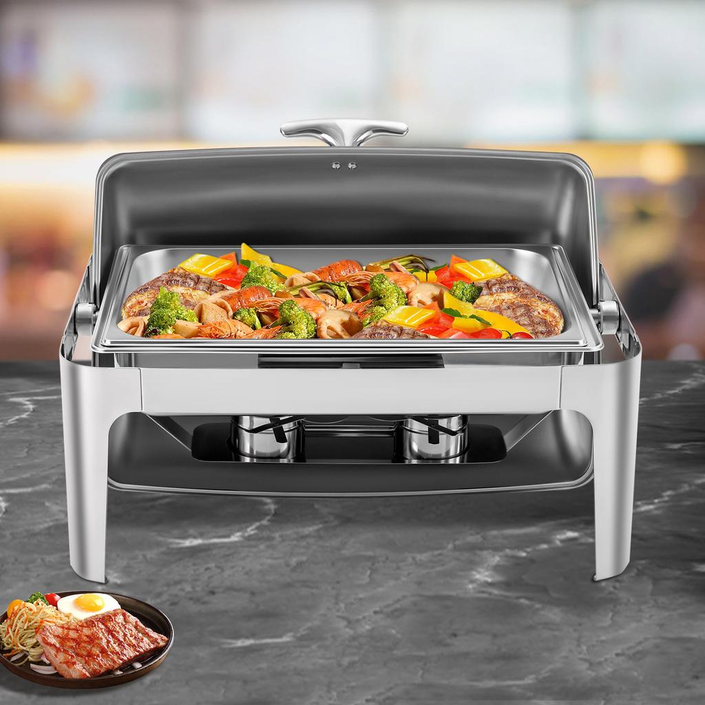 Roll Top Square Chafing Dish, Single Compartment 9L Buffet Server, 64x46x44cm Stainless Steel Food Warmer, Catering Supplies