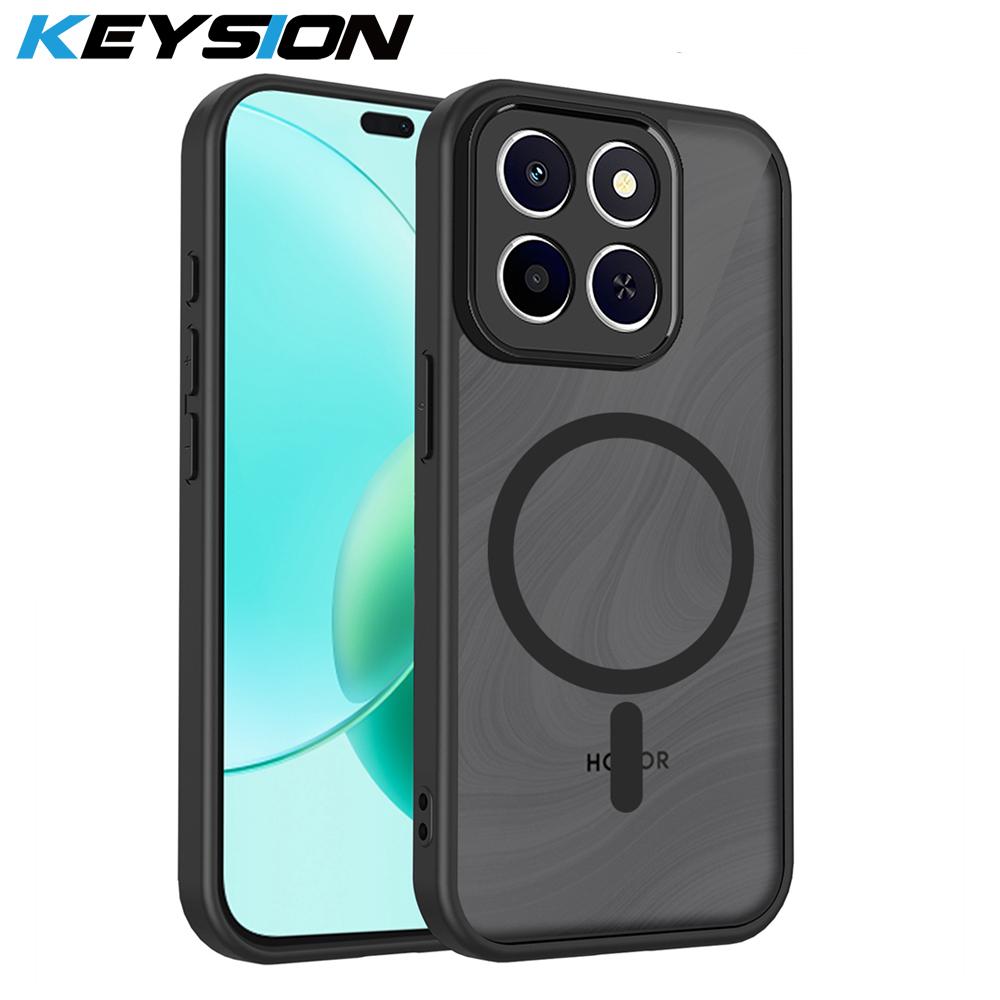 KEYSION Matte Translucent Magnetic Phone Case for HONOR X7d 5G Silicone+PC Clear Shockproof Cover for Honor 400 Smart 5G