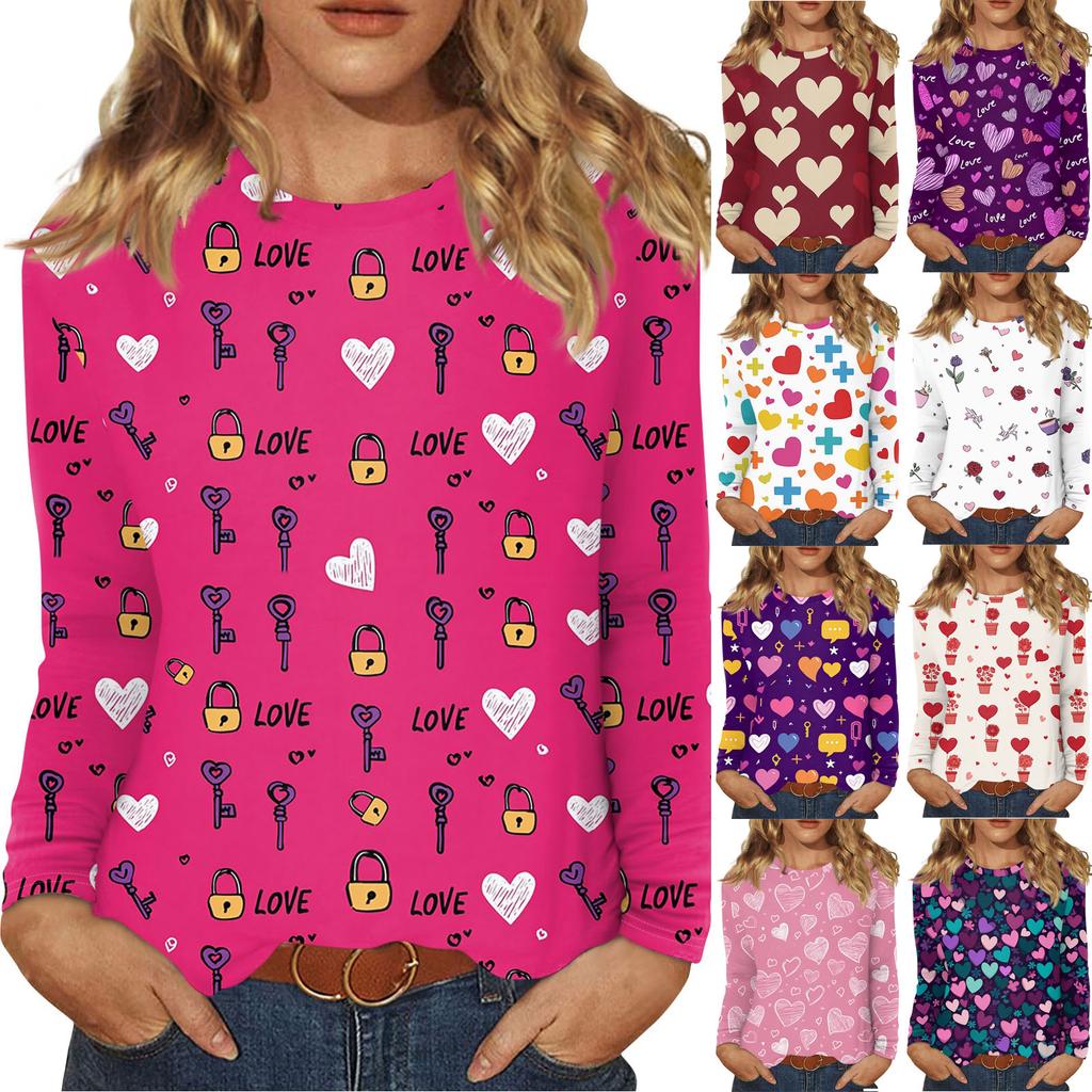 Damen Valentinstag Modisches Herzmuster Rundhals Langarm Pullover Top