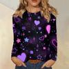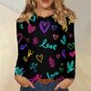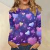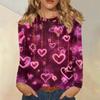 Damen Valentinstag Modisches Herzmuster Rundhals Langarm Pullover Top