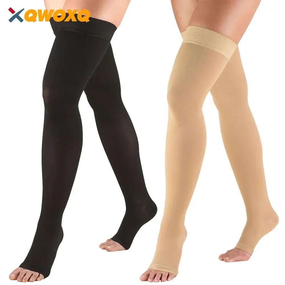 Zehenfreie Oberschenkelhohe Kompressionsstrümpfe mit Silikonband von Xqwoxq