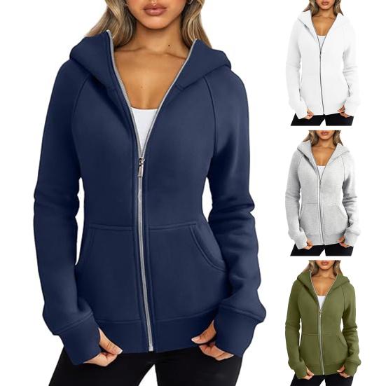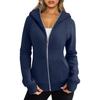Damen-Kapuzenjacke mit Plüschfutter, einfarbig, Reißverschluss mit Taschen, elastischen Bündchen